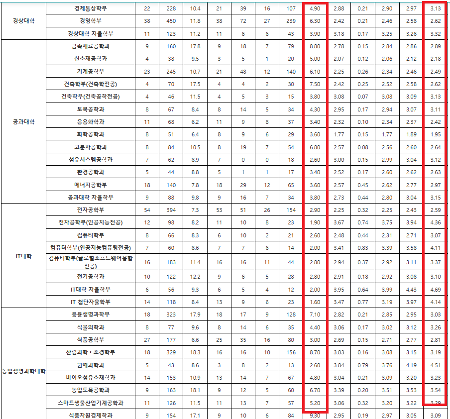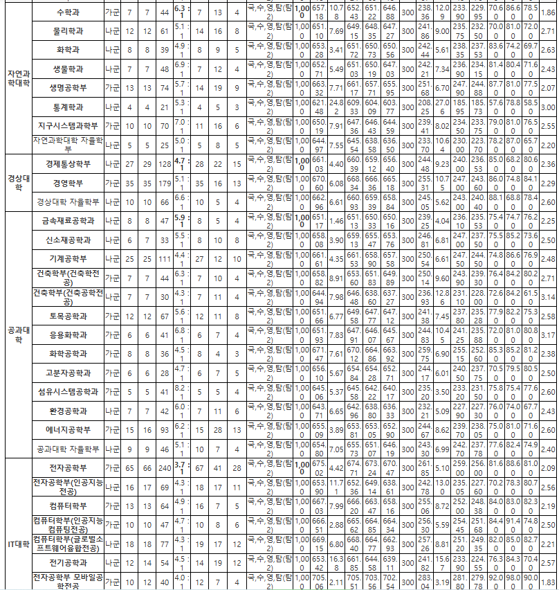 다른 학과들도 마찬가지로 교과 성적과 수능 성적을 균형 있게 준비하는 것이 중요해 보였어요.