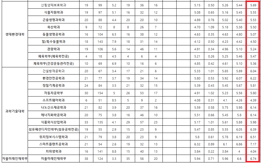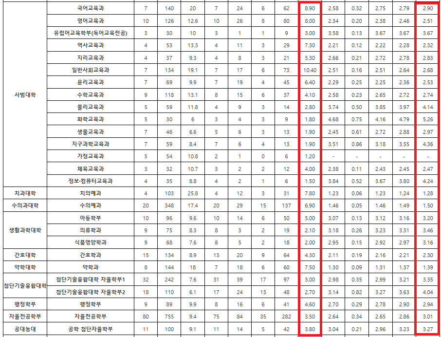 여기서는 정말 눈에 띄는 경쟁률을 보인 학과들이 있었죠.