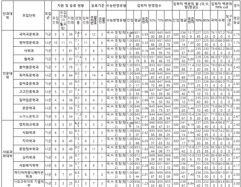 특히 노어노문학과는 3명 모집에 134명이 지원해서 무려 44.7:1이라는 놀라운 경쟁률을 기록했어요.