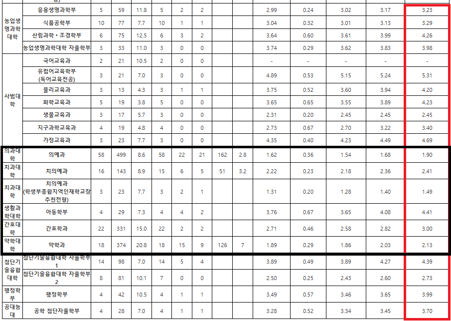 | 치의예과 | 8.9 : 1 | 2.22 |