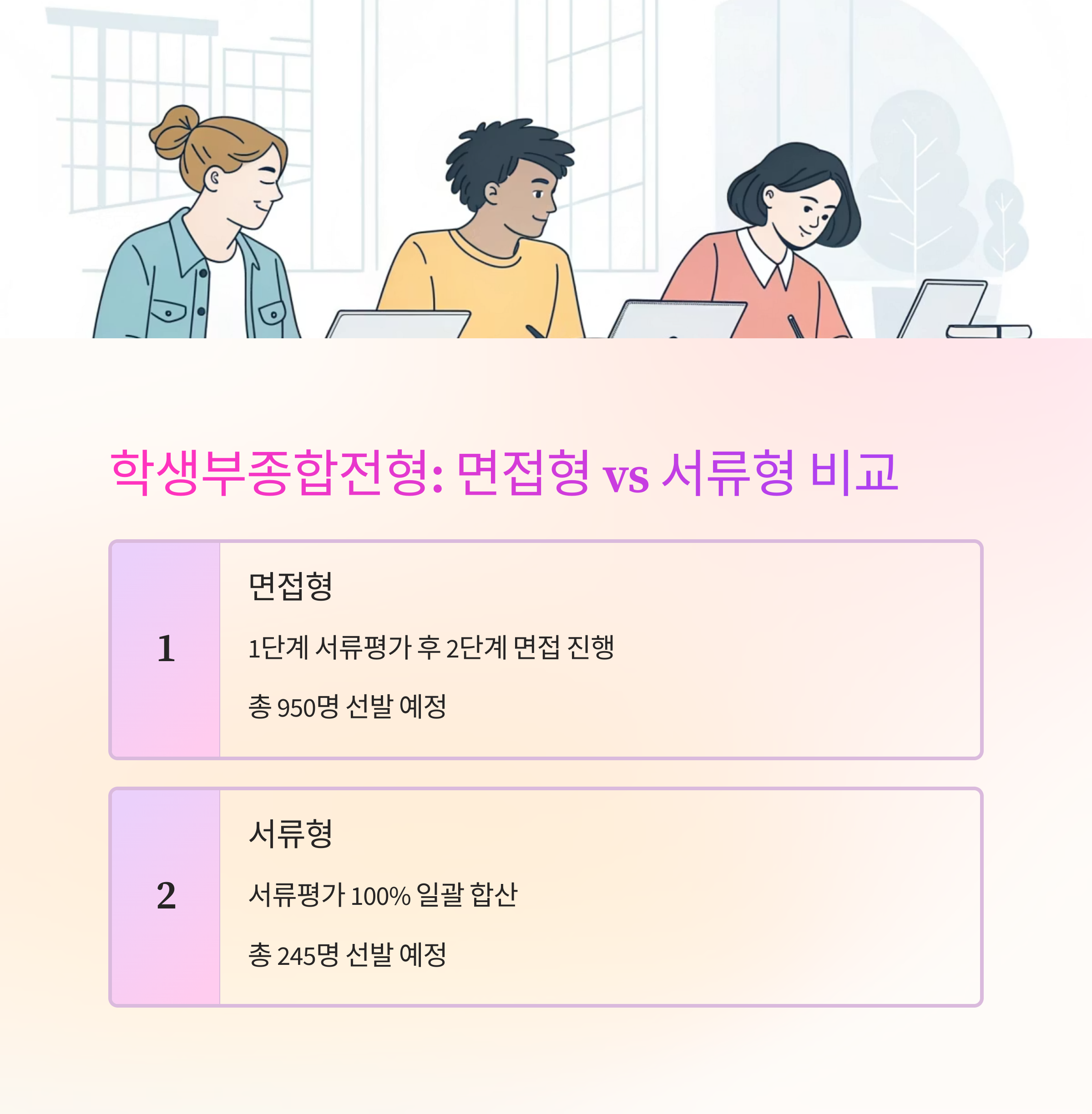 학생부종합전형은 크게 면접형과 서류형으로 나뉘는데요.