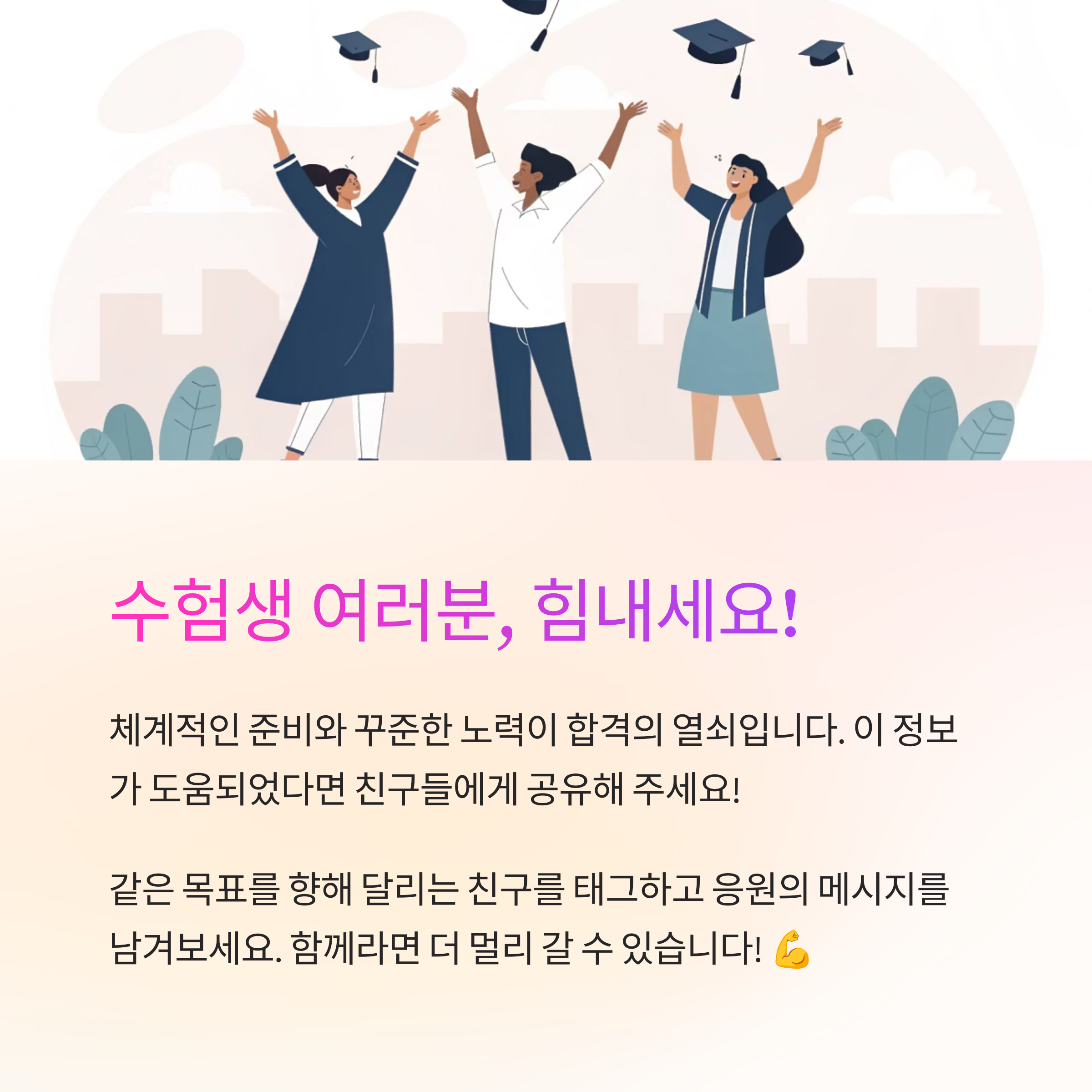 | 꼭 기억하세요 최종 모집요강은 반드시 확인해야 합니다. 수시와 정시 모두 전형별 세부 사항을 꼼꼼히 확인하고 자신에게 가장 유리한 전형을 선택하세요. 힘든 시간을 보내고 있을 수험생과 학부모님들 모두 좋은 결과 얻으시기를 진심으로 응원합니다! |