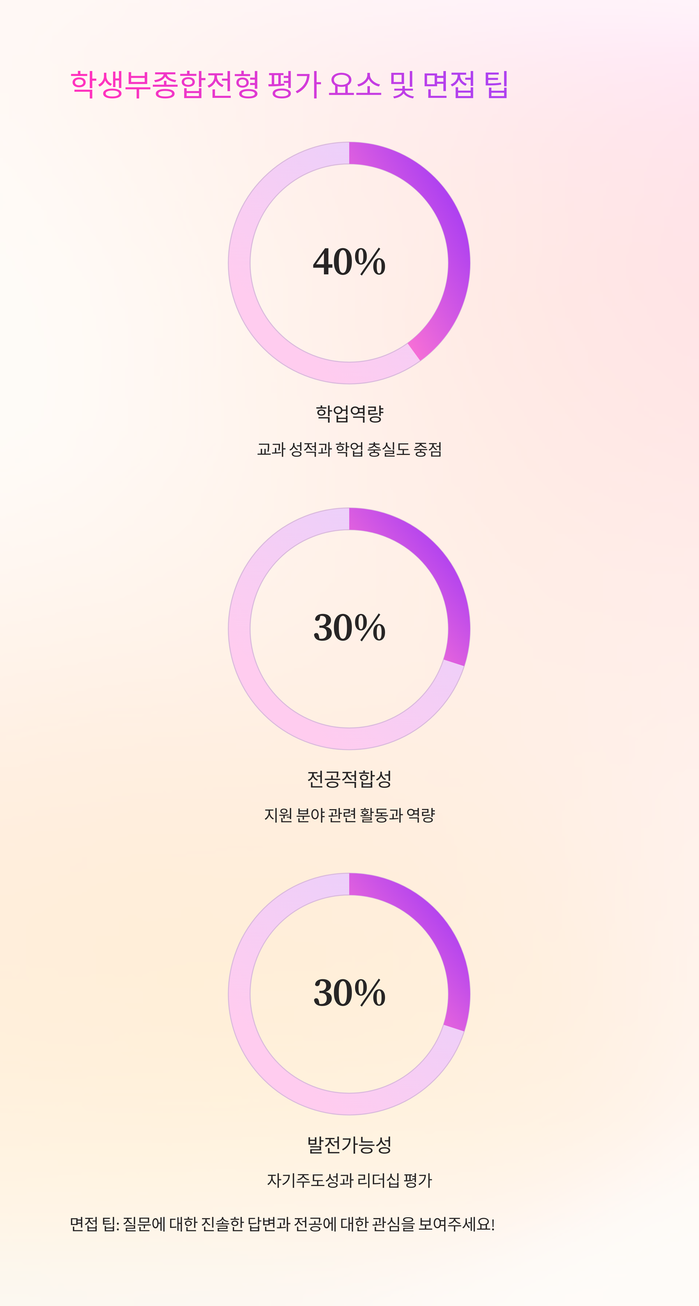 학생부종합전형은 학업역량, 진로탐구역량, 공동체역량을 주로 평가해요.