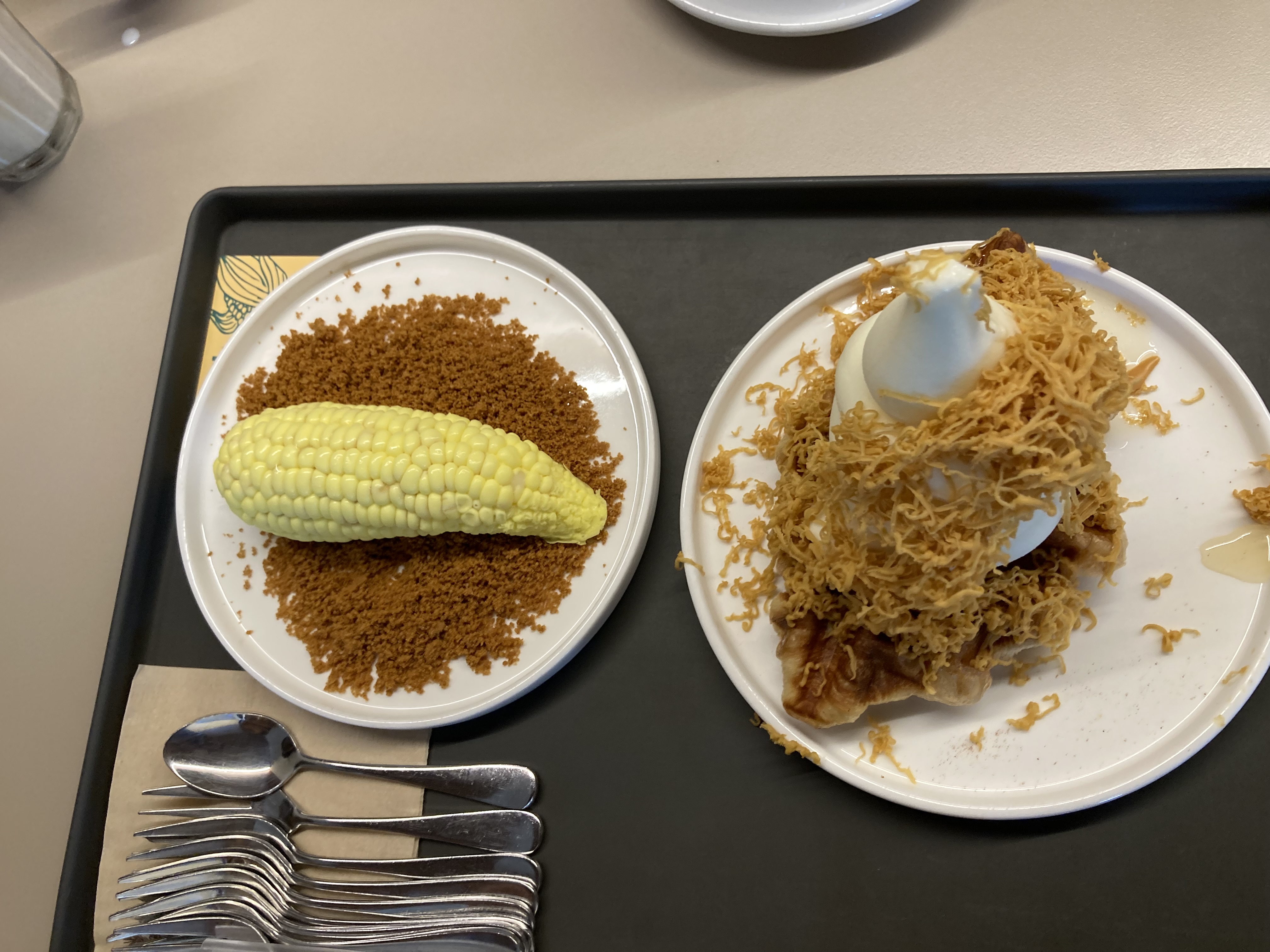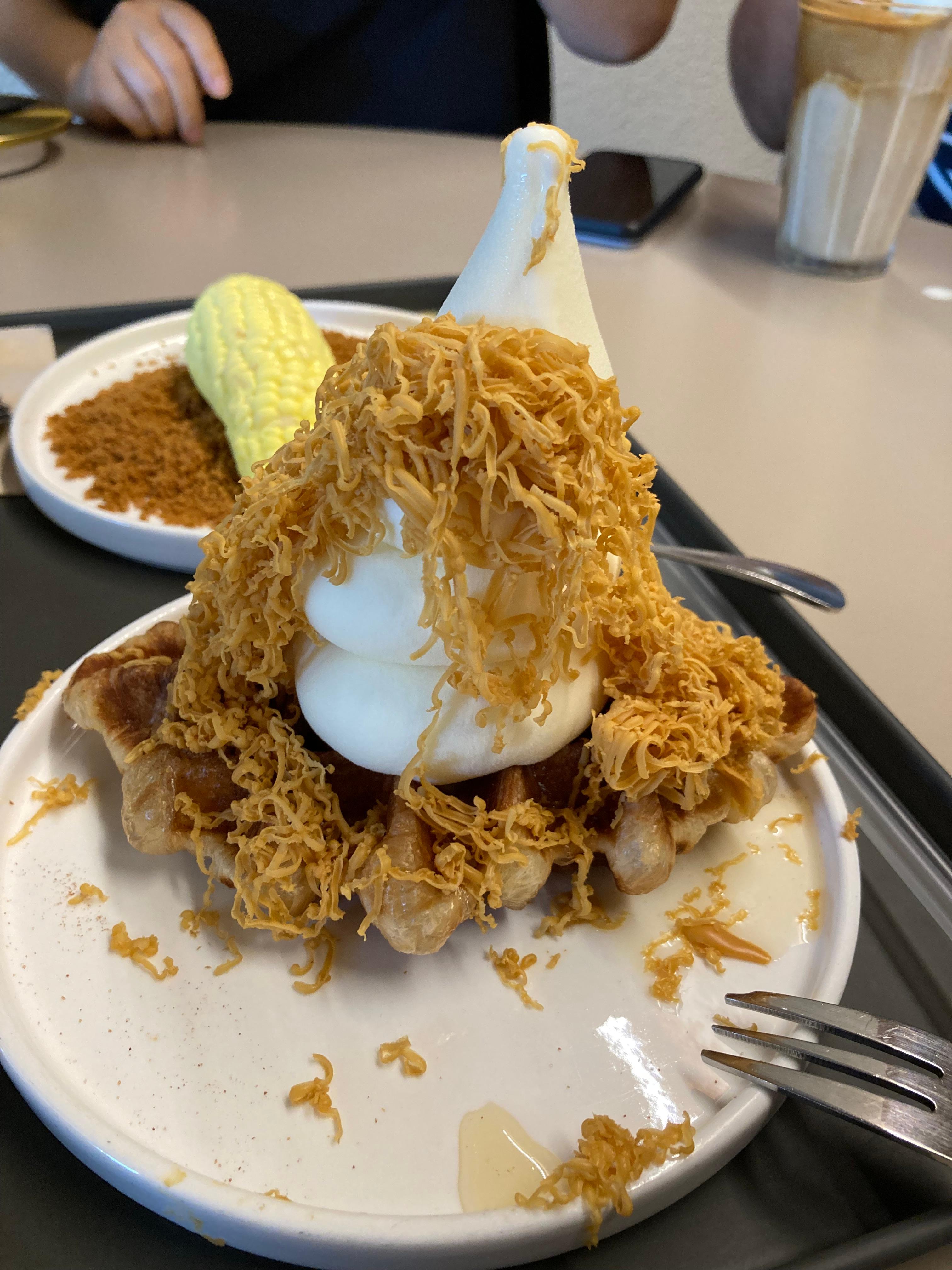 크로플 위에 아이스크림이랑 단짠 치즈가 너무 잘 어울려요. 강추예요.